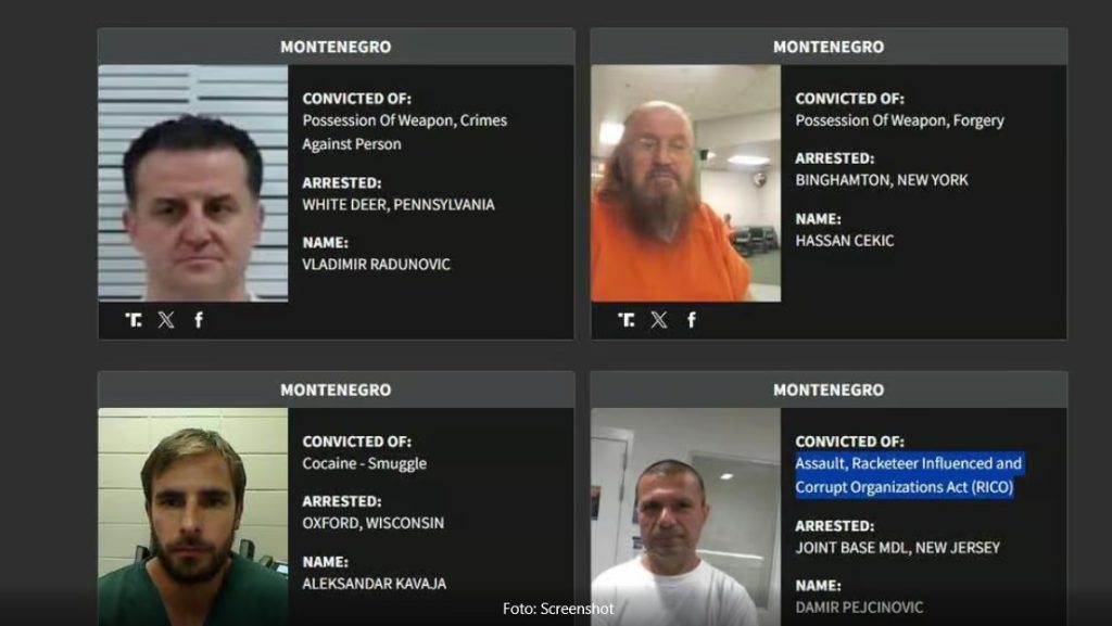 Američko Ministarstvo unutrašnje bezbjednosti (DHS) objavilo je listu stranih državljana koje je uhapsila Služba za imigraciju i carine (ICE), a koji se terete ili su osuđeni za teška krivična djela. Na spisku, koji je Ministarstvo nazvalo „Najgori od najgorih“, nalaze se i imena četvorice državljana Crne Gore.