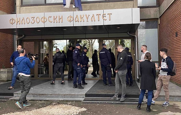 Policija je više puta intervenisala ispred fakulteta, a u nekim slučajevima i ulazila u samu zgradu kako bi prikupila izjave učesnika protesta. Prema izvještajima, prisutna je i Hitna pomoć zbog povreda koje su nastale tokom incidenata, uključujući i fizičke napade na studente i novinare.