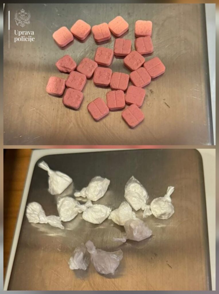 U blizini jednog ugostiteljskog objekta kontrolisan je B.V. (24) iz Podgorice, kod kojeg su pronađeni MDMA, 25 pakovanja marihuane i više “džointa”. On je uhapšen po nalogu Višeg državnog tužilaštva zbog sumnje da se bavio neovlašćenom proizvodnjom, držanjem i stavljanjem u promet opojnih droga.