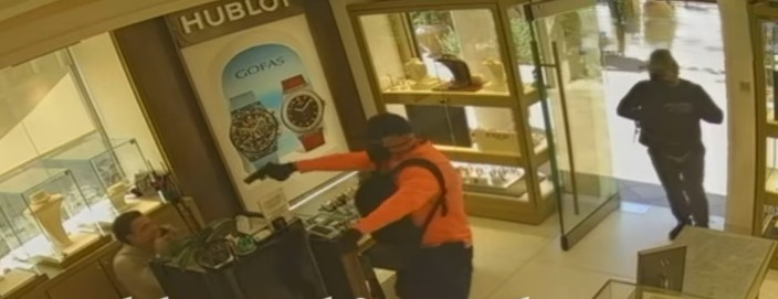 Pod prijetnjom oružjem radnici su primorani da legnu na pod, dok su pljačkaši za manje od minuta ispraznili vitrine sa skupocjenim satovima i nakitom. Jedan od razbojnika je čak preskočio radnika koji je bio na koljenima ispred pulta, što se jasno vidi na snimku.